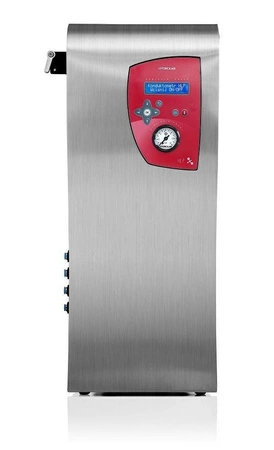 - Stopnie oczyszczania: prefiltr osadowy 5µm, filtracja osadowo-węglowo-zmiękczająca, odwrócona osmoza, podwójna demineralizacja na mieszanym złożu jonowymiennym