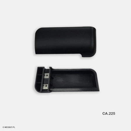 Klamka mocowana jest za pomocą dwóch śrub, co gwarantuje stabilne i pewne połączenie z drzwiami autoklawu. Jej ergonomiczny kształt zapewnia wygodny chwyt i łatwą obsługę. Czarny kolor klamki nadaje jej estetyczny wygląd, pasujący do większości modeli autoklawów.