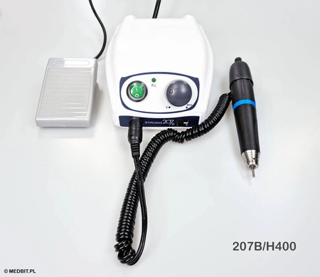 Mikrosilnik protetyczny STRONG 207B/H400 35 000 obr./min, 65W, mikromotor H400, zestaw z pedałem, SAESHIN