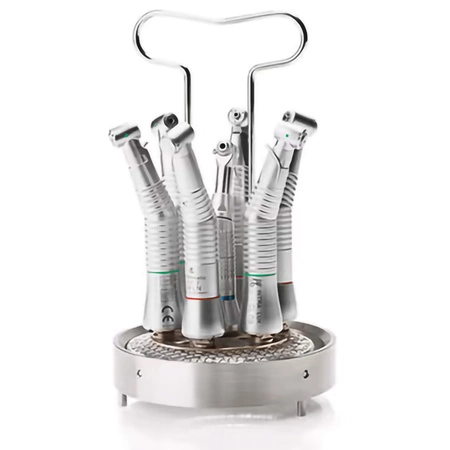 Okrągły uchwyt z adapterami ISO dla 7 końcówek stomatologicznych to profesjonalne rozwiązanie dedykowane do pracy z autoklawem i konserwatorem końcówek MELAquick 12+ firmy MELAG. Produkt ten pozwala na bezpieczne i wygodne mocowanie aż siedmiu końcówek stomatologicznych jednocześnie, zapewniając maksymalną efektywność procesu sterylizacji oraz konserwacji narzędzi.