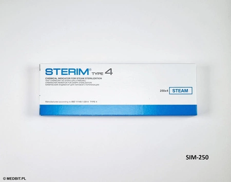 Wieloparametrowe wskaźniki chemiczne STERIM Klasa 4 SIM-250 do sterylizacji parowej 121-134°C, 250 szt.