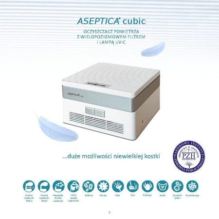 - Zestaw Aseptica Cubic (2 szt.) to nowoczesny dezynfektor powietrza z filtrem HEPA, UV-C i jonizatorem. Skutecznie usuwa wirusy, bakterie i alergeny. Idealny do domu, biura i samochodu!